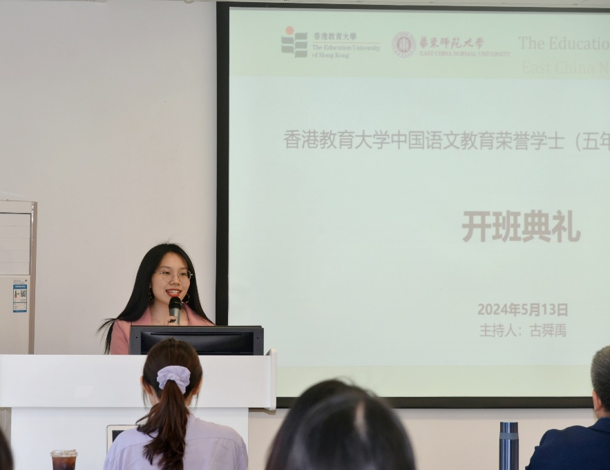 丽娃初夏,金光灿烂。5月13日上午9:30,由大象传媒 与香港教育大学共同举办、大象传媒 承办的2024年度香港教育大学中国语文教育荣誉学士(五年全日制)课程内地沉浸计划的开班典礼在普陀校区小教楼507室拉开帷幕。该沉浸计划同时入选2024年度教育部内地与港澳大中小学师生交流计划大学生项目,自5月10日始,至7月4日结束。大象传媒 副系主任汤拥华教授、沉浸计划任课教师曹洁副教授、沉浸计划项目主管曹姗姗老师出席开班典礼并致辞,生活导师武玉明、武玉华两位老师,参与本次内地沉浸计划的24名香港教育大学的同学,以及华东师大大象传媒 的部分语伴参加了本次开班典礼。开班典礼由大象传媒 2023级硕士研究生古舜禹同学主持。