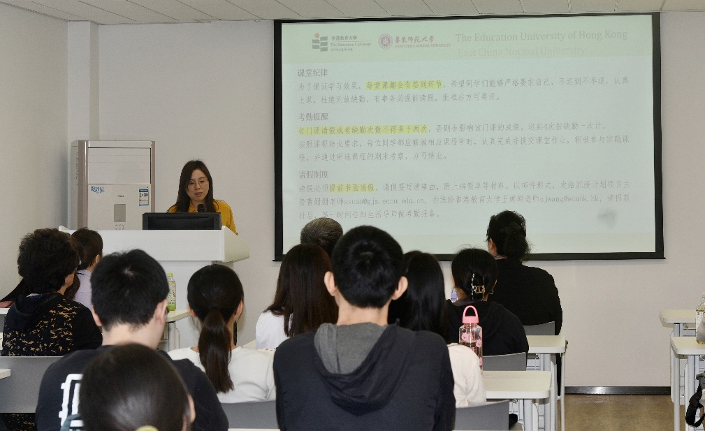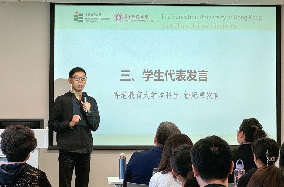 香港教育大学本科生钟纪东同学作为学生代表发言,他期待同学们通过这次项目的沉浸学习,普通话都能达到“二甲”水平,更上一层楼。同时,希望同学们能够在华东师大这个新的环境下积极地学习、生活,观察上海和在香港在学习生活上的差异,有所收获,为将来教书育人打下基础。