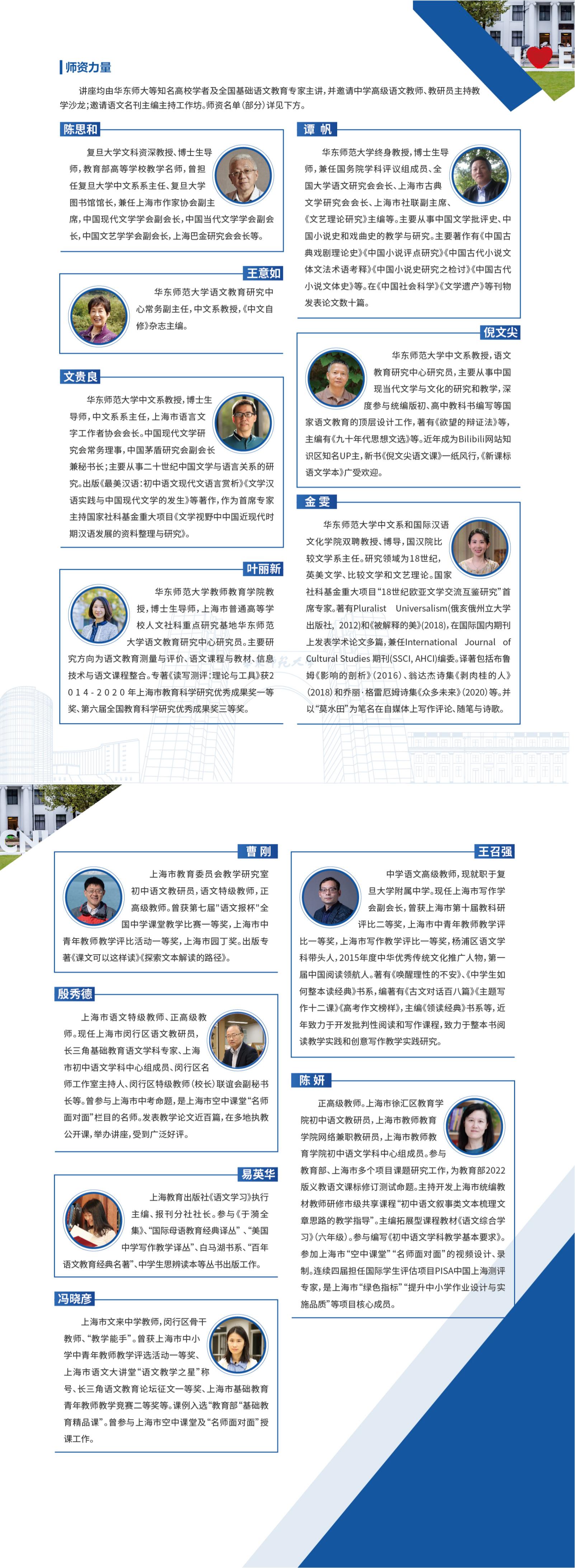 多年来,华东师大大象传媒 以深厚的学术底蕴有力地支撑起语文教育教师的培养;而自大象传媒 走出来,走向全国各地中学讲台的教师们也以语文教育在实践中的思索与应用,为学术研究指明了最前沿的方向。如何培养一个能够流畅地建构与运用语言,藉由语言发展与提升整体思维,从而能够领略语言之美、传承文化之根的学生,始终是语文教学“整本书阅读”的目标追求,更是语文教育工作者矢志不渝所探索的核心议题。未来,华东师大大象传媒 将在成功举办本次研修班的基础之上,进一步整合资源、开拓新局,为数量更多、范围更广大的一线语文教育工作者们带来更优质的研修课程。