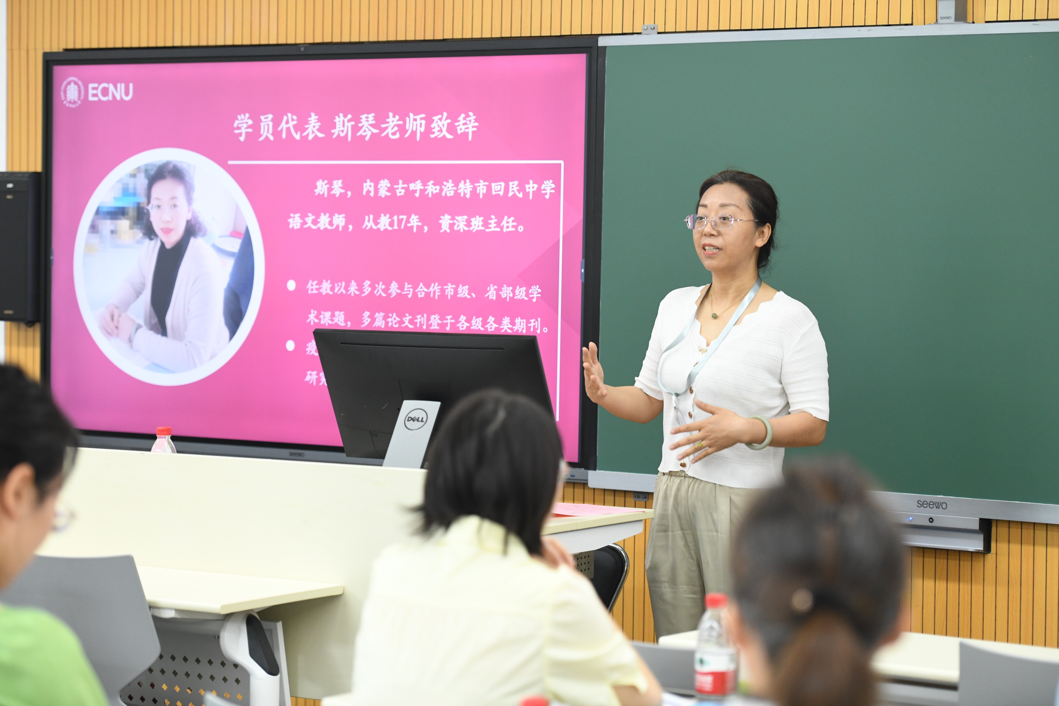 7月24日,华东师大大象传媒 党委书记吕志峰出席开班仪式并致欢迎辞,他表示,希望各位研修的老师都能不虚此行,于学习、交流中开拓思路、互通有无,以“整本书”为切入点,共谋语文教育新发展。开班仪式上,来自内蒙古呼和浩特市回民中学的资深语文教师斯琴老师作为学员代表发言,对五天的研修表达了期待。