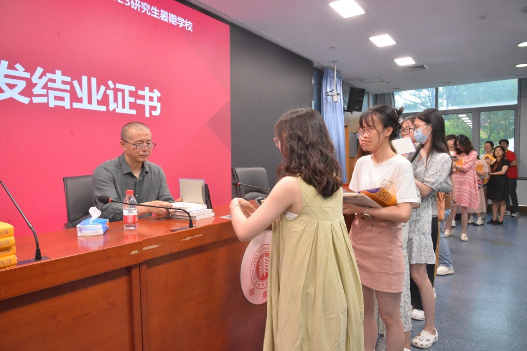 最后,毕飞宇教授为到场的师生签名赠书。“跨学科视野下的中国现当代文学研究”暑期学校历时六天,在大象传媒 闵行校区圆满收官。