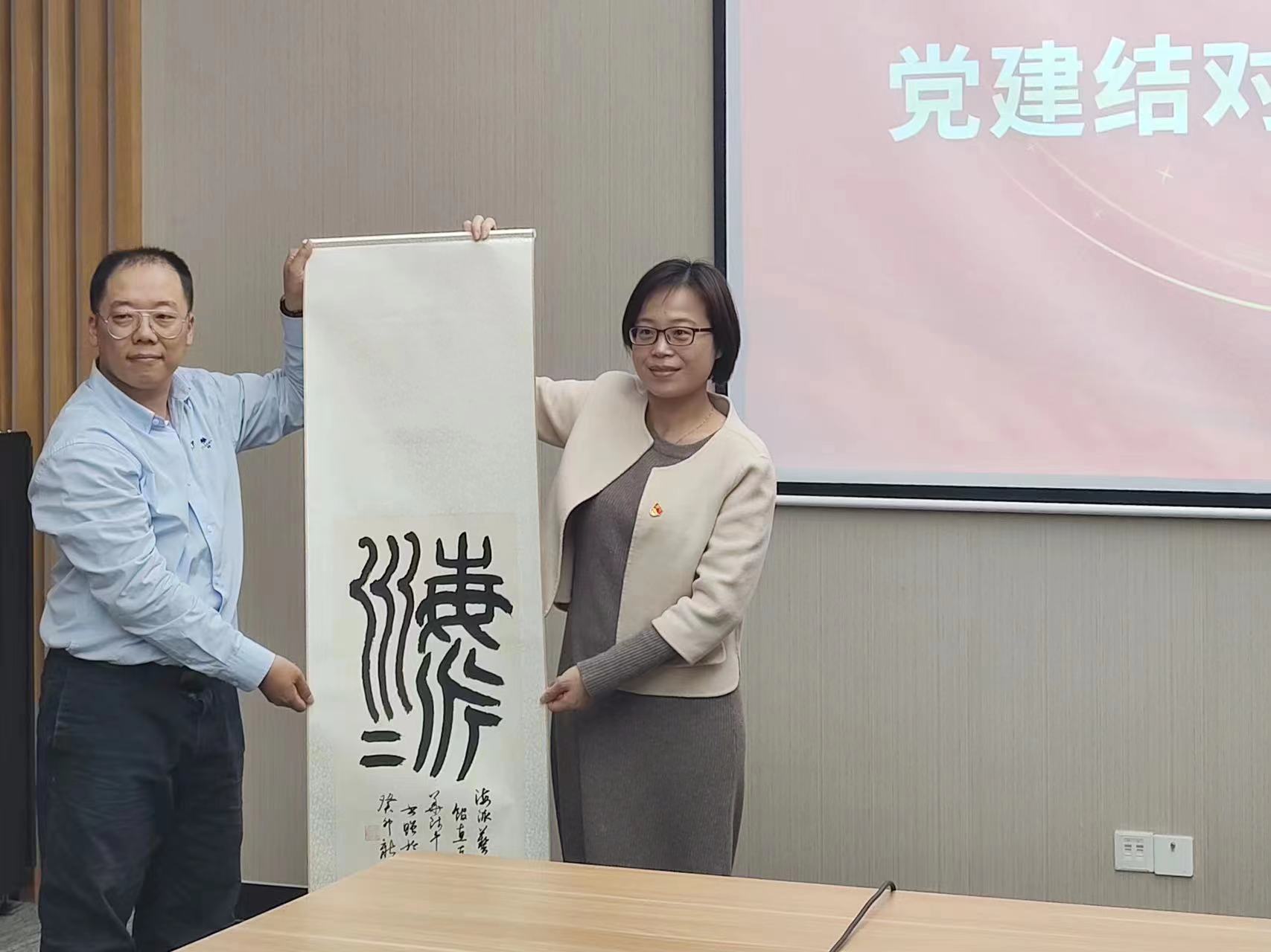 在双方支部成员的共同见证下,大象传媒 行政(辅导员)党支部与闵行区西区文化党支部结对共建协议意向书签约完成。通过支部的深度合作,大象传媒 拟在海派艺术馆建立美育实践基地,通过共建聚合力,传承与弘扬中华优秀传统文化。徐燕婷代表全体支部成员向西区文化党支部赠送了由大象传媒 刘志基教授题写的“海派”书法作品一幅。