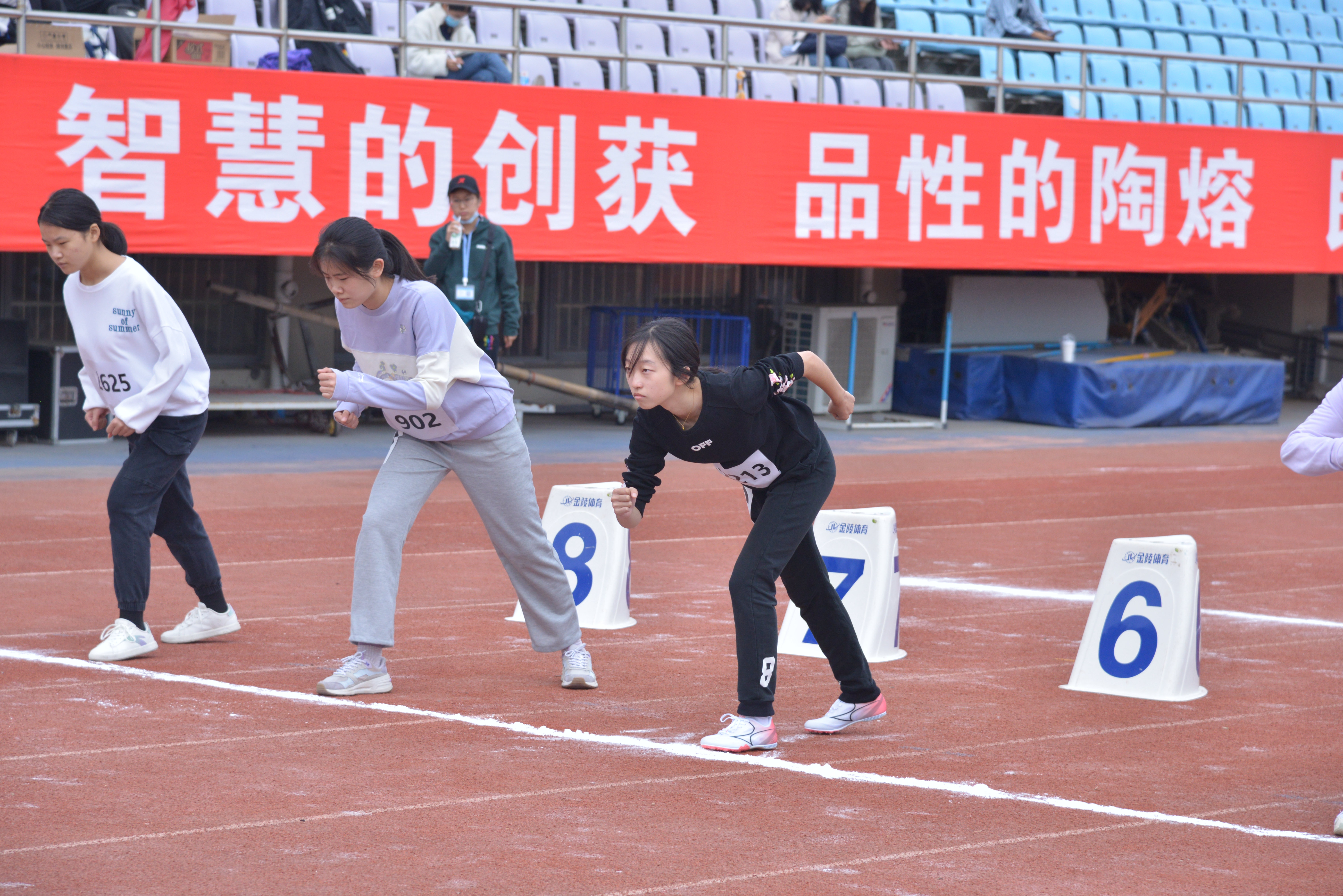 径赛中,运动员们“起跑若有神,脚下风万里”。沈瑜淇、许馨月二位同学分别在50米短跑与女子400米跑荣获第二与第八的位次。
