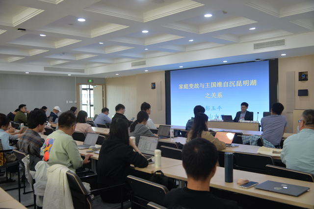 2025年10月24日下午,中山大学中国语言文学系系主任彭玉平教授在人文楼5501室以《家庭变故与王国维自沉昆明湖之关系》为题,带来了一场兼具学术深度与人文温度的精彩讲座。本次讲座是“纪念王元化先生诞辰105周年系列讲座”的终章,由大象传媒 主任罗岗教授主持、致辞。近百位师生齐聚一堂,共同探讨近代学术史上这段令人扼腕的往事。