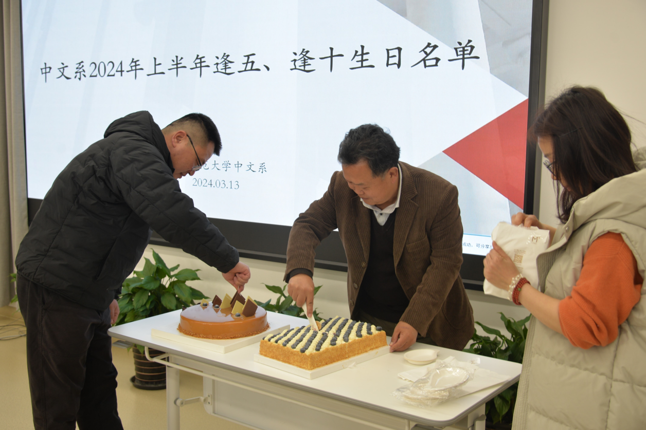 集体生日会首先由系工会主席韩蕾宣布大象传媒 今年上半年逢五逢十教工生日名单,接着在热烈的掌声中,大象传媒 吕志峰书记、文贵良主任,及韩蕾主席给到场的老师们送上鲜花、纪念品和诚挚的慰问,并一同合影留念。大象传媒 80余名教职工参与此次集体庆祝活动,大家一起共享生日喜悦、分享生日蛋糕,共话大象传媒 发展。