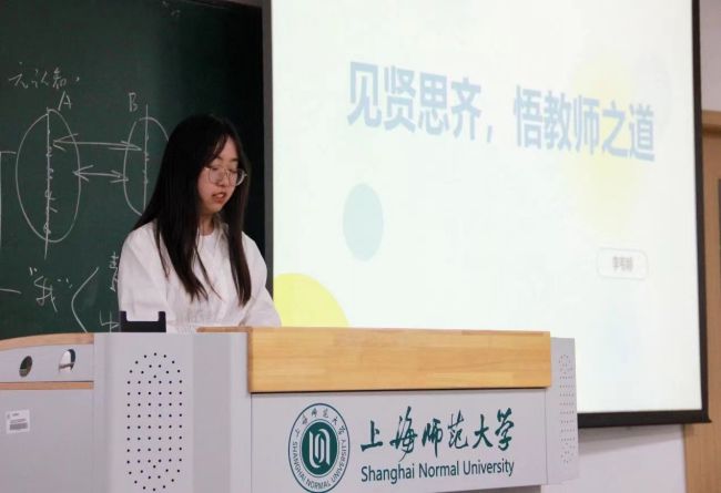 上海师范大学2021级学生李韦婷以“见贤思齐,悟教师之道”为题,从实习机会获取、实习流程、实习内容等角度为大家介绍了参加教育实习的经历,勉励大家见贤思齐,树立职业理想。