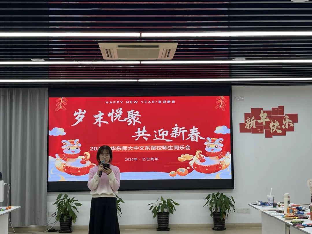 为进一步增进师生情谊,丰富留校学生文化生活,感受新年团圆氛围,1月17日晚,2025年大象传媒 留校师生同乐会在文史哲楼4430报告厅顺利举办。大象传媒 党委副书记徐燕婷、副系主任汤拥华,博士生辅导员方中书、张青、张潇萌,研究生辅导员焦艳,本科生辅导员张雅薇与假期留校的20余名本、硕、博学生欢聚一堂,畅聊旧年旧事,共话新春新程。