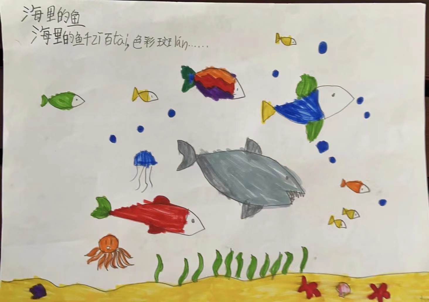 该活动一经发起,就收到了孩子们的热情回应,大家纷纷拿起画笔,画出生活日常的美好,畅想多姿多彩的世界。有的孩子用细腻的笔触勾勒出家园美景,有岸边桃花、流水人家;有的孩子充分发挥想象力,描绘心中的海洋世界,精彩无限;有的孩子聚焦身边的植物和动物,用丰富的色彩描绘出人与自然和谐相处、其乐融融的画面;还有的孩子则任笔触穿梭于历史与当下、现实与想象之间,表达出自己对世界的感悟和认识。